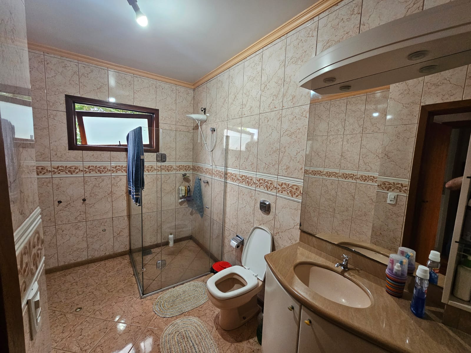 - área da casa de 243m² (parte superior 108m², parte inferior 135m²);